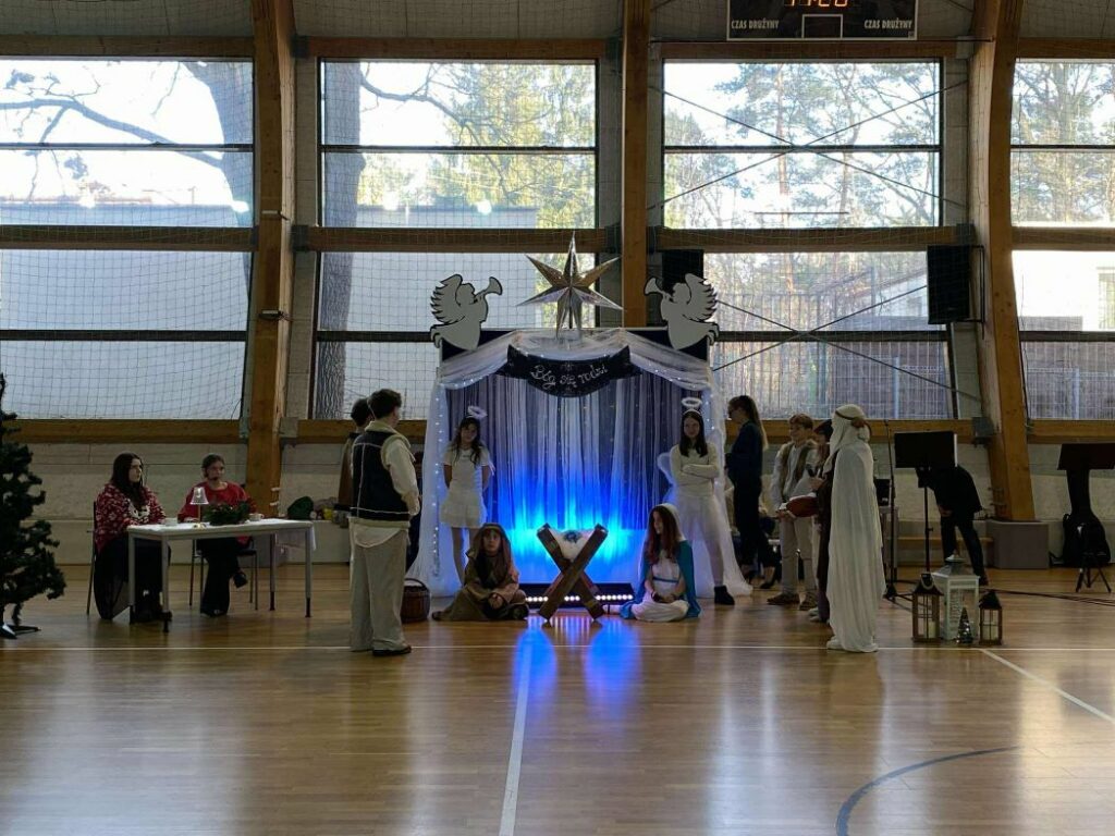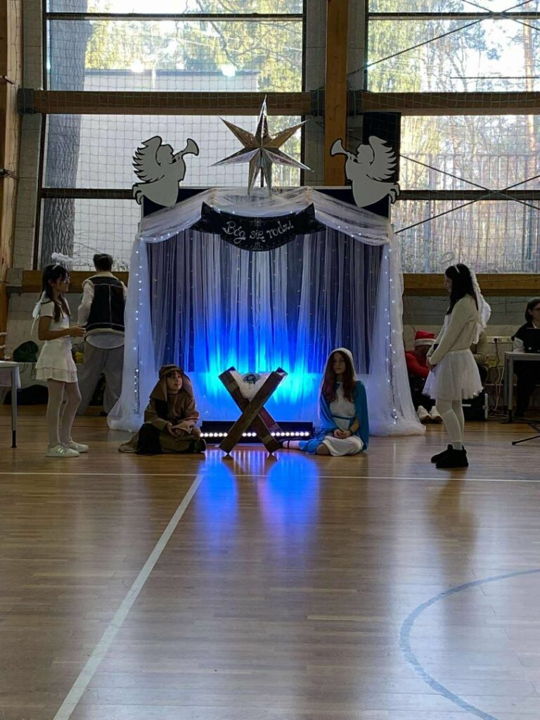 Podczas szkolnych jasełek, które odbyły się 19 grudnia, wspaniale zaprezentowali się uczniowie klas szóstych oraz przedstawiciele klas 4b i 4c. Było to wyjątkowe przedstawienie, ukazujące narodziny Pana Jezusa, którego na świecie powitali pasterze, aniołowie oraz Trzej Królowie.