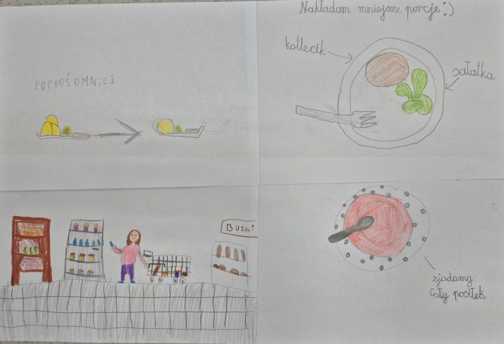 W naszej szkole przeprowadzono pogadanki na temat „Nie marnuję żywności”. Uczniowie dowiedzieli się, jak ważne jest odpowiedzialne gospodarowanie jedzeniem oraz jakie skutki niesie jego marnowanie dla środowiska i gospodarki. W ramach zajęć wykorzystano metodę burzy mózgów, dzięki której uczniowie przedstawili wiele pomysłów na ograniczenie marnotrawstwa żywności w codziennym życiu. Efektem wspólnej pracy były plakaty i infografiki promujące postawy proekologiczne oraz świadome wybory konsumenckie.