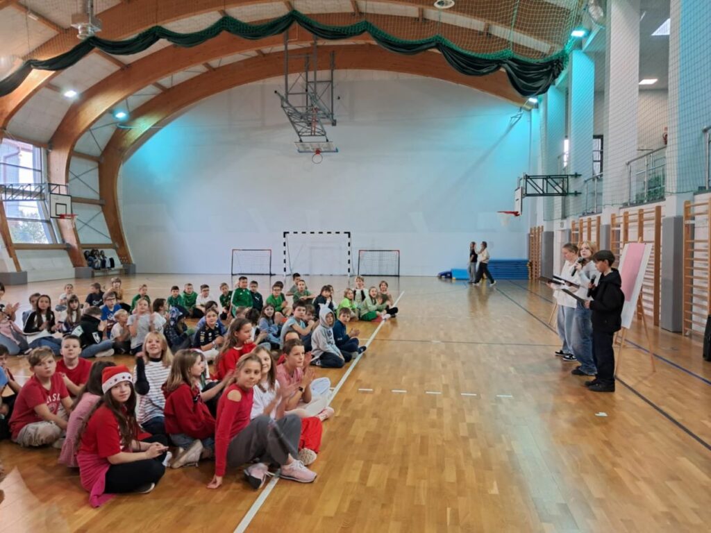 Poszczególne klasy czwarte uczestniczyły w konkurencjach przy boku swoich wychowawców: pań – Anny Ciszewskiej, Kamili Budek oraz pana Łukasza Kowalskiego. Po powitaniu rozpoczęły się różne zadania – przedstawienie hasła klasowego, kalambury, quiz na temat szkoły itp.