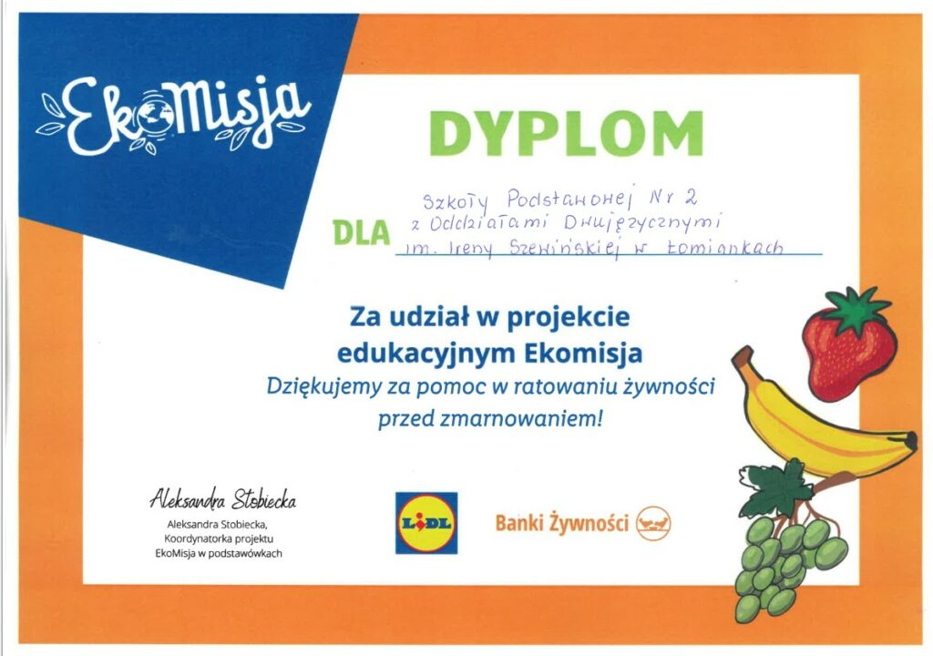 Uczniowie Szkoły Podstawowej nr 2 wzięli udział w projekcie „Ekomisja – Jak nie marnować żywności”. Podczas zajęć uczestniczyli w pogadankach na temat odpowiedzialnego gospodarowania jedzeniem, oglądali filmy edukacyjne oraz wykonywali notatki. Przygotowali także plakaty promujące niemarnowanie żywności i dobre nawyki związane z planowaniem posiłków. Udział w projekcie pomógł uczniom lepiej zrozumieć, dlaczego warto szanować jedzenie i jak w prosty sposób ograniczać jego marnowanie na co dzień.