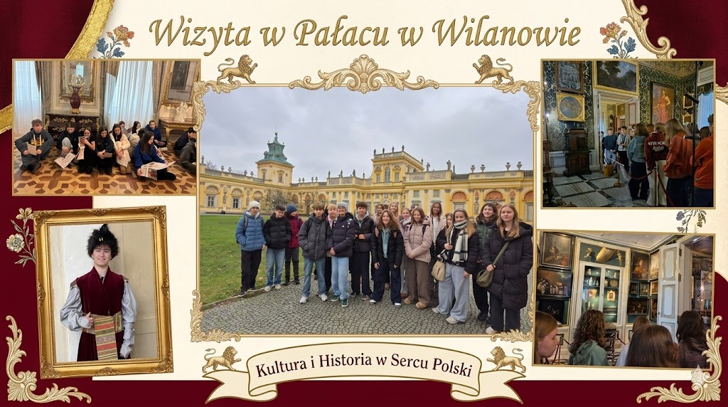 Wyjście edukacyjne do Pałacu w Wilanowie pozwoliło uczniom poznać symbolikę wnętrz pałacowych oraz życie na sarmackim dworze. Podczas zwiedzania uczniowie odkrywali, jak dekoracje, malarstwo i układ pomieszczeń odzwierciedlały wartości epoki. Poznali także codzienne zwyczaje szlachty, elementy kultury sarmackiej oraz funkcje poszczególnych komnat. Wyjście sprzyjało rozwijaniu kompetencji kluczowych, m.in. umiejętności komunikacji, współpracy w grupie, interpretacji tekstów kultury oraz świadomego odbioru dziedzictwa historycznego. A w klasach dwujęzycznych kompetencji językowych- warsztaty były prowadzone w języku angielskim Dzięki doświadczeniu bezpośredniego kontaktu z zabytkiem uczniowie pogłębili wiedzę o baroku i historii Polski.